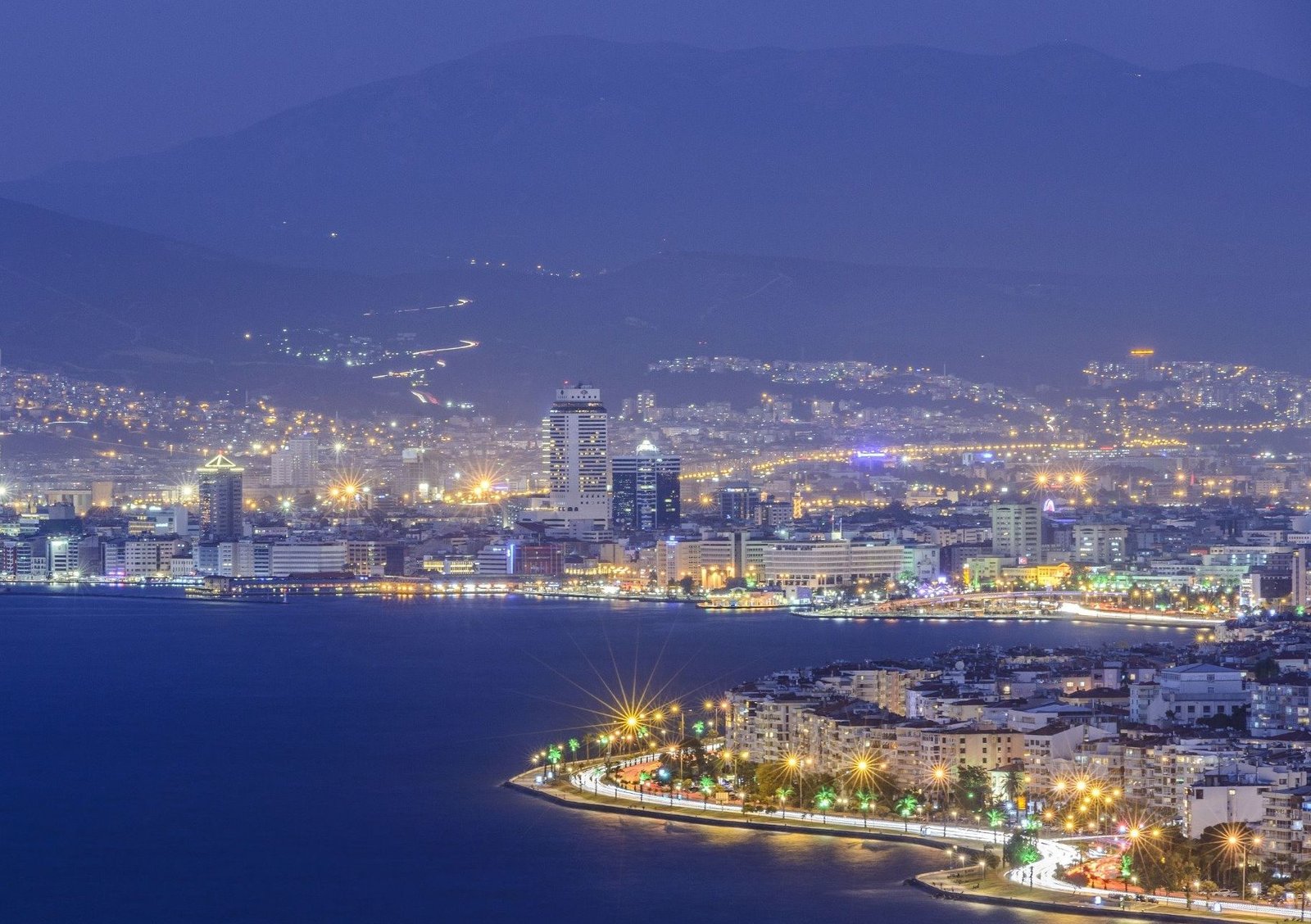 panoramic night views of the Gulf of Izmir.